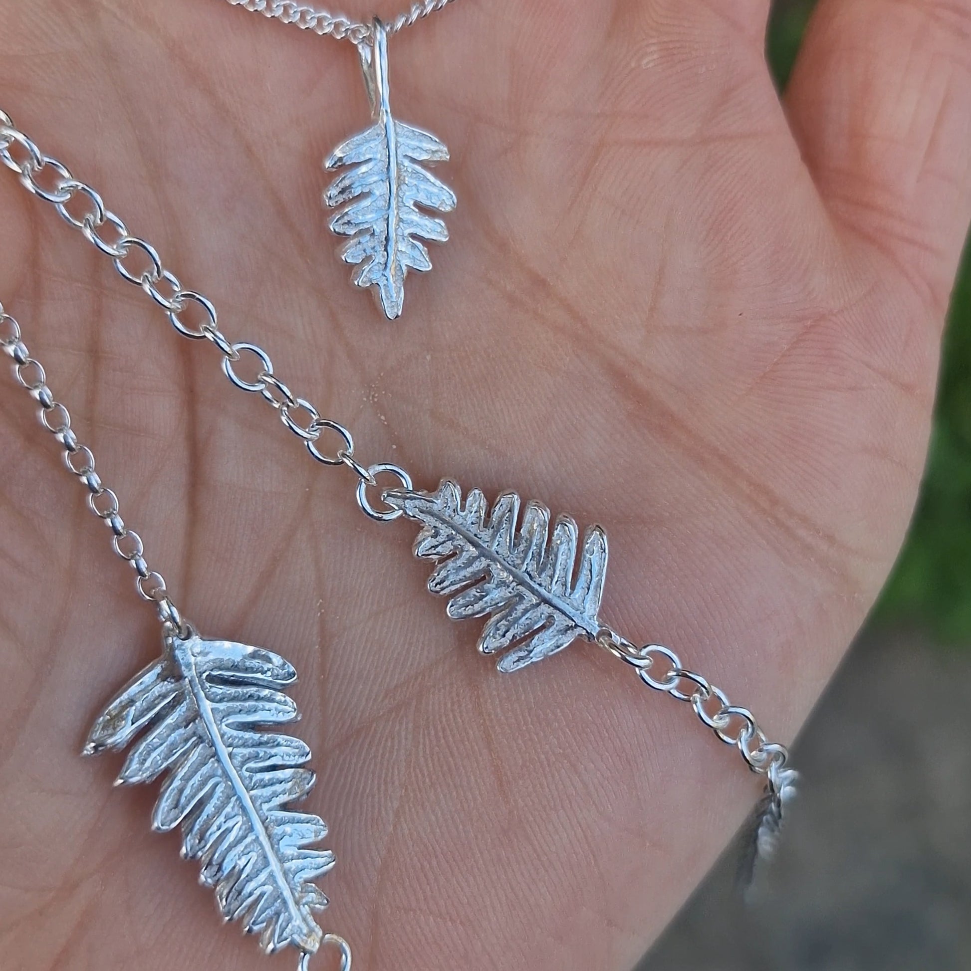 Crafted in sterling silver using an imprint from a real fern leaf plucked from the surroundings of Lacock Village, UK. The fern measures approximately 28mm x 18mm on an 18" chain.
