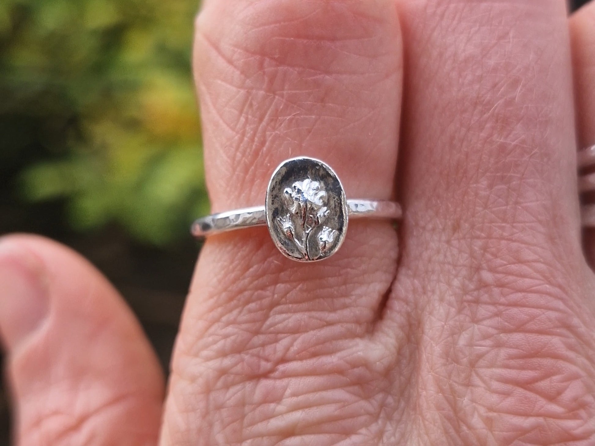 Capture nature's intricate beauty with this ring with a genuine leaf imprint. A true one-of-a-kind piece and a testament to the beauty of nature's imperfections. Each imprint is made with pure fine silver art clay.