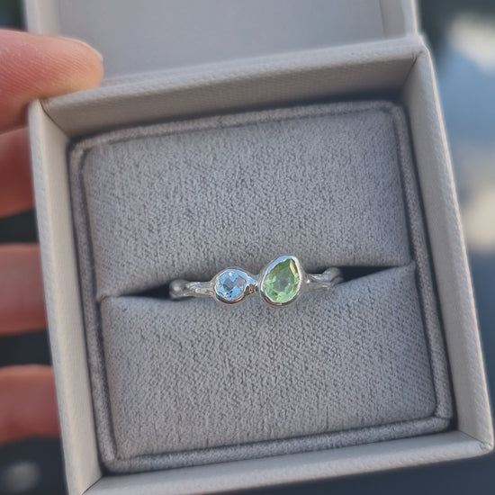 Molten Pear Peridot & Sky Topaz Ring - Size UK Q